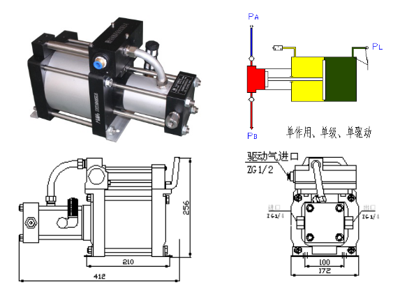 DTA系列泵是標(biāo)準(zhǔn)單氣動(dòng)頭單作用泵,可充氮?dú)狻⒖諝饧按蟛糠輾怏w介質(zhì),泵體采用優(yōu)質(zhì)鋁合金和不銹鋼缸體活塞,驅(qū)動(dòng)缸徑分160mm、200mm、240mm三種規(guī)格,具有結(jié)構(gòu)緊湊、堅(jiān)固耐用、大流量等特點(diǎn)。所有DTA系列泵根據(jù)使用加壓介質(zhì)的不同采用相應(yīng)材料密封件.